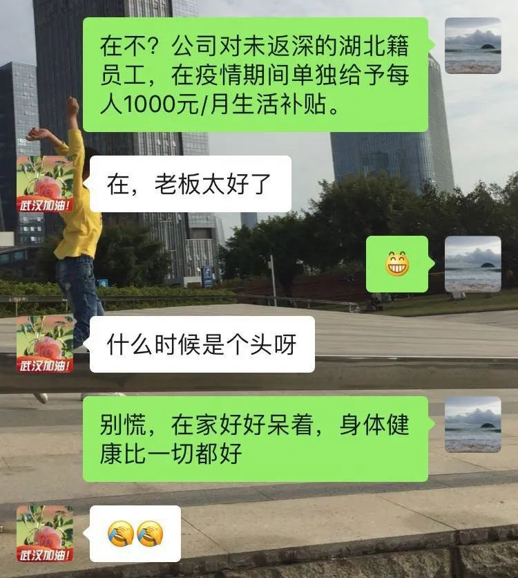 “工資已經(jīng)全額到賬,由于疫情影響,針對(duì)不能返程的湖北籍員工,每人額外發(fā)放1000元生活補(bǔ)貼?!?月17日,身在湖北公安的晏君收到公司通知后,懸著的心終于放了下來。晏君是深圳坤弘印務(wù)有限公司倉儲(chǔ)部記賬員,她坦言,公司發(fā)放的工資和生活補(bǔ)助是“雪中送炭”,過去近一個(gè)月心里確實(shí)很忐忑,既擔(dān)心沒工資發(fā),又害怕丟了工作,如今不用擔(dān)心經(jīng)濟(jì)來源了?!瓣P(guān)鍵時(shí)候,公司不僅沒有拋棄我們,還給我們諸多關(guān)愛。我發(fā)現(xiàn)我更愛公司、更愛我的工作了。”