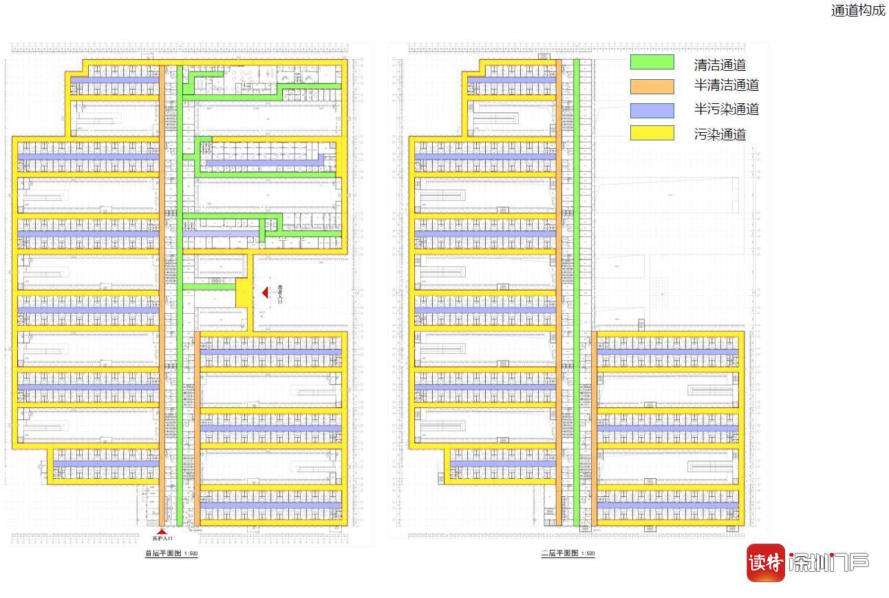 據(jù)了解,應急醫(yī)院采用更加嚴格的“四區(qū)三通道”布局,分為清潔區(qū)、半清潔區(qū)、半污染區(qū)、污染區(qū)、清潔通道、半清潔通道、污染通道。