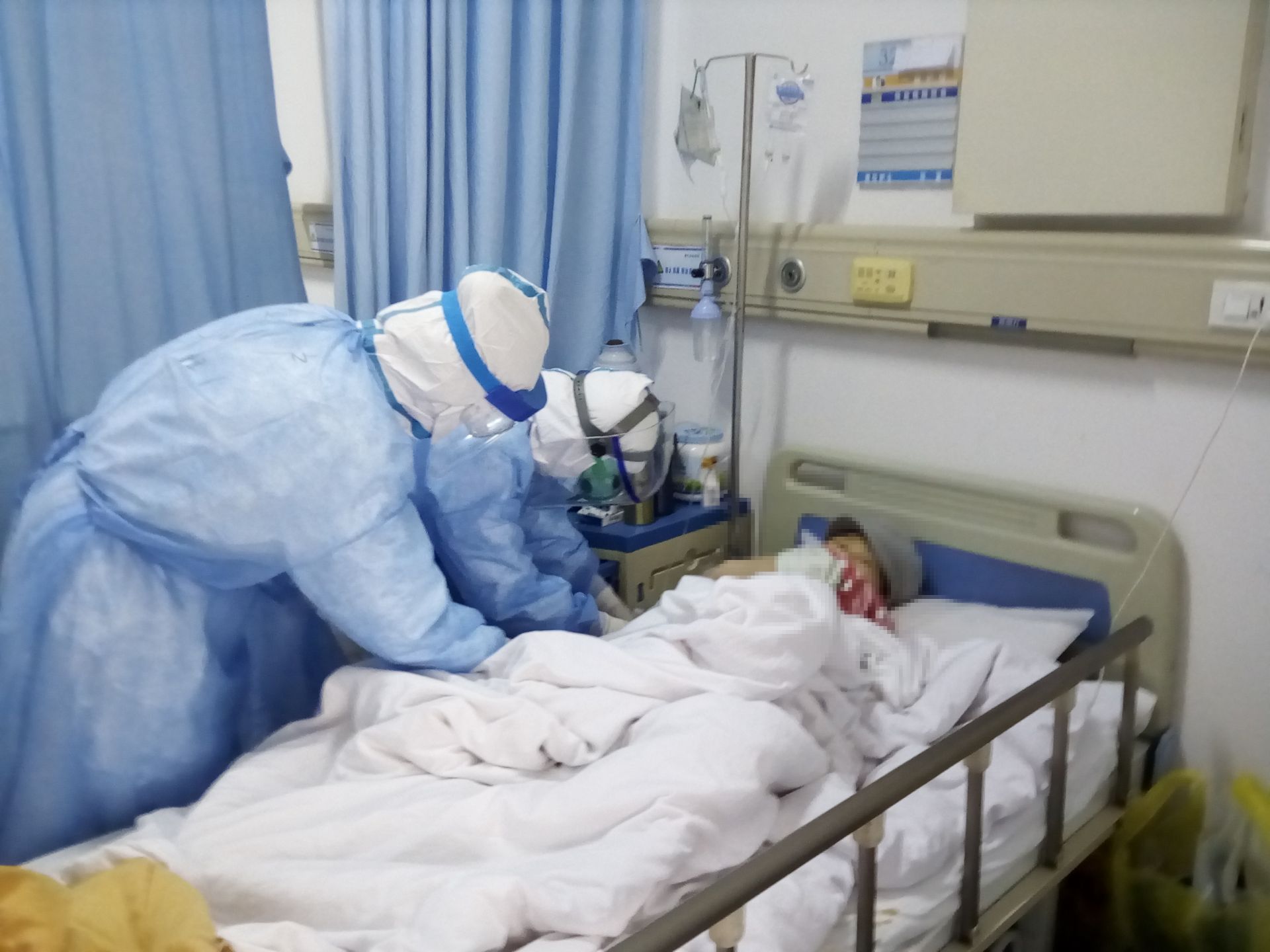 醫(yī)療隊(duì)隊(duì)員在重癥病區(qū)護(hù)理患者。