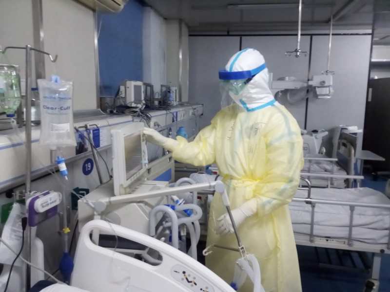 三病區(qū)上下兩層樓,38個病人,我全部過了一遍,任務圓滿完成。但最危險的事情來了:出病房脫隔離衣。這個環(huán)節(jié)是沒人幫忙的,全靠自己。我跟著指示一步一步做,小心翼翼地避免碰到被污染的防護裝備。隔離衣還是有點小,幾經(jīng)掙扎,終于脫下。小心小心再小心,還是沒站穩(wěn),腳點了一下地板,馬上把襪子脫下扔掉,再用酒精噴灑腳部。安全第一,這時候沒辦法心疼那雙新襪子。