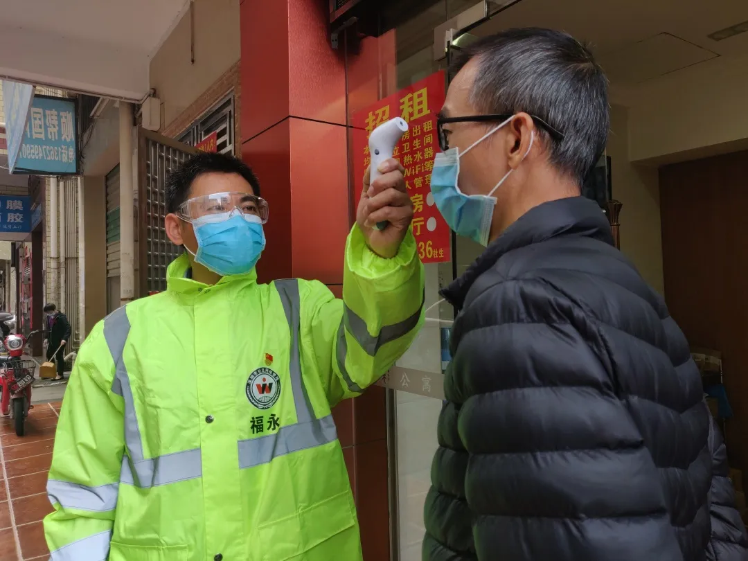 有次序地開(kāi)始測(cè)量員工的體溫,對(duì)外出的員工進(jìn)行登記,車間里彌漫著消毒水的味道,