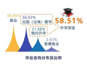 統(tǒng)計至2019年12月25日,南科大2019年本屆畢業(yè)生就業(yè)率達97.38%,其中,就業(yè)比例為38.88%,升學深造比例達58.51%。