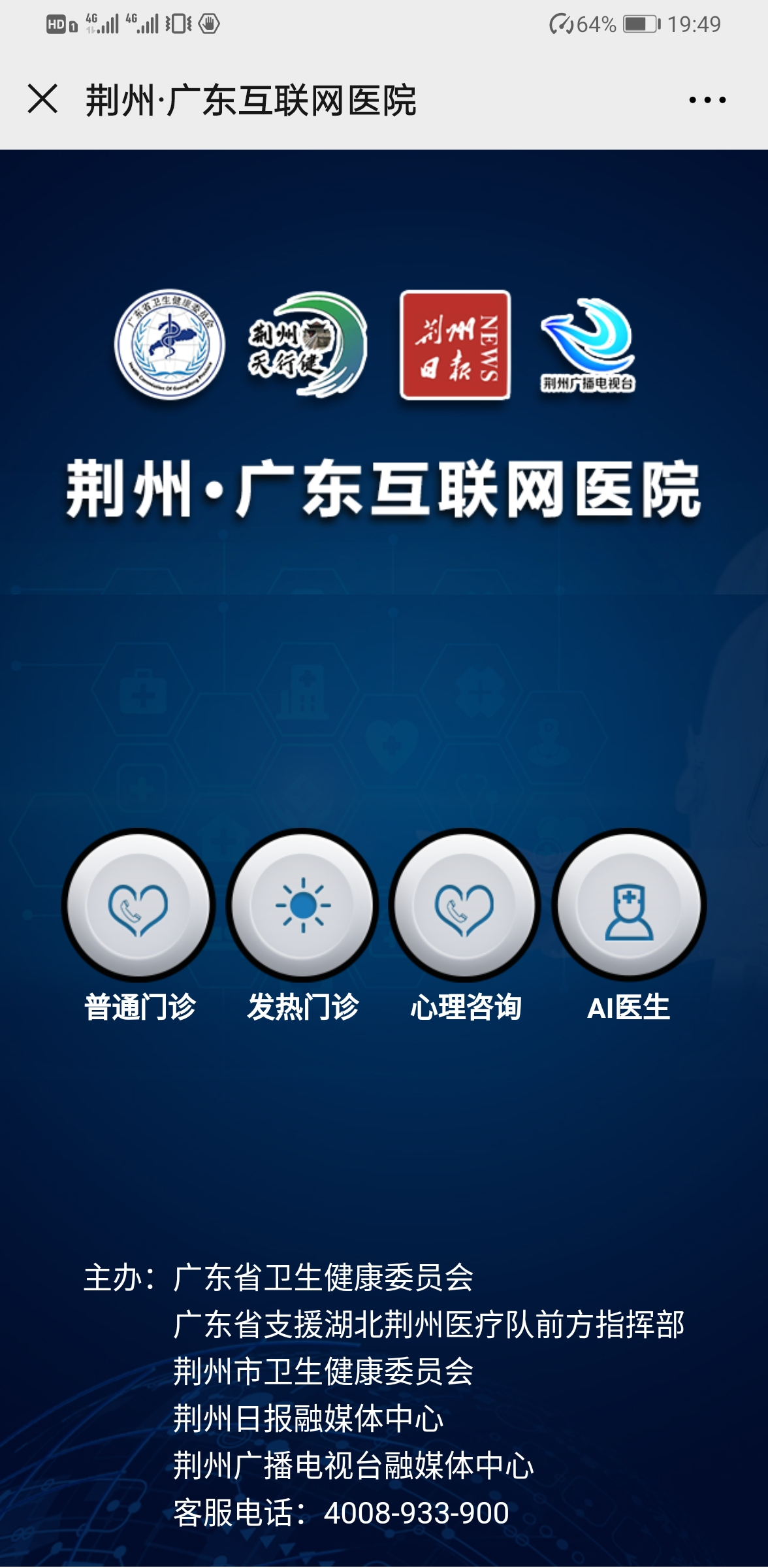 這家互聯(lián)網(wǎng)醫(yī)院是由廣東省衛(wèi)生健康委和廣東支援湖北荊州醫(yī)療隊前方指揮部聯(lián)合,在充分研判荊州疫情防控形勢的基礎(chǔ)上組建的網(wǎng)上醫(yī)療隊,實現(xiàn)荊州市民足不出戶,即可享受后方優(yōu)質(zhì)的線上服務(wù)資源,為前方“主戰(zhàn)場”減負。