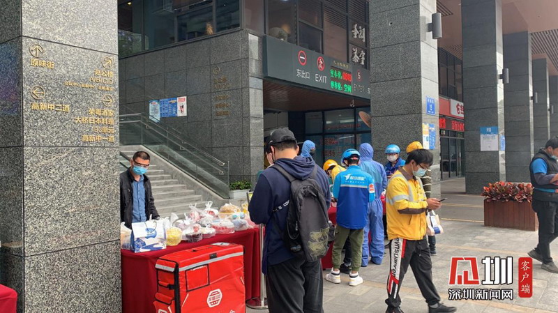 目前,人員用餐還是以外賣為主,科興科學(xué)園的美食街除了服務(wù)本園區(qū)外,也為周邊人員提供用餐服務(wù)。園區(qū)鼓勵大家盡量線上點(diǎn)餐,由相關(guān)人員下樓統(tǒng)一取餐,再分散自行用餐,避免人員聚集。