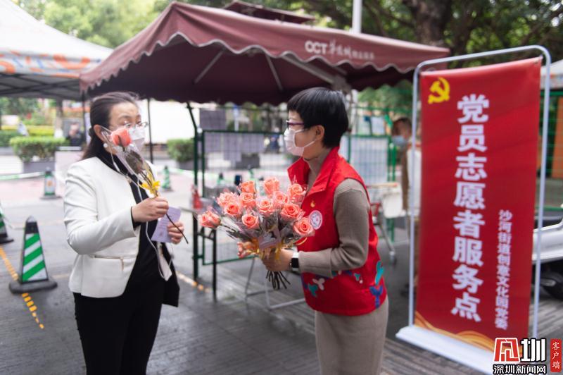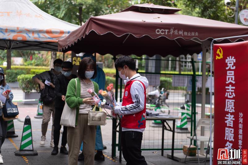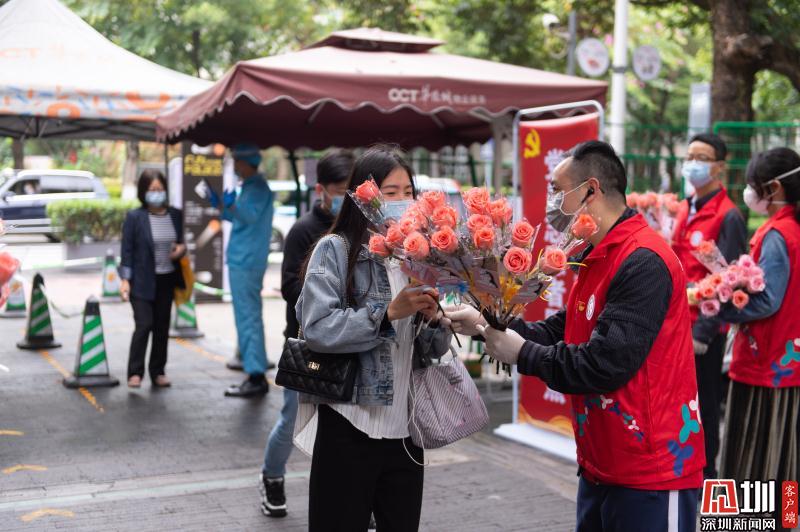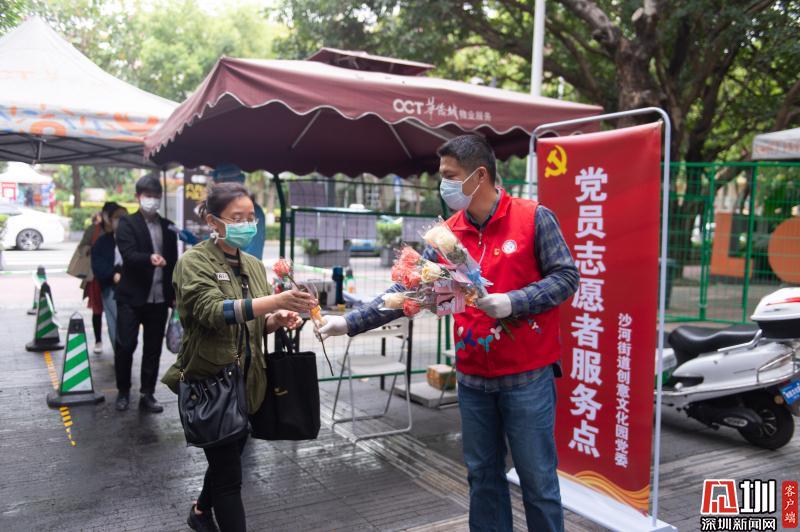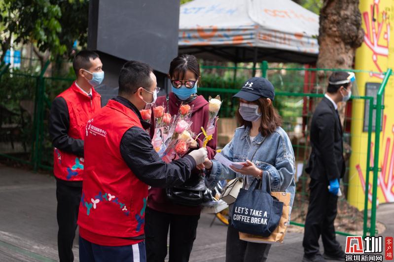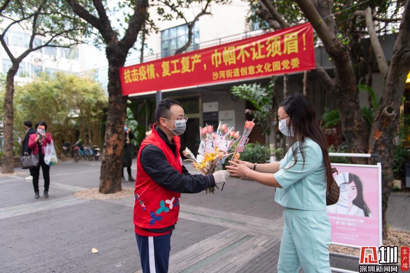 見(jiàn)圳客戶端·深圳新聞網(wǎng)2020年3月6日訊 3月6日上午,春暖花開(kāi),萬(wàn)物更新。華僑城創(chuàng)意文化T街入口,進(jìn)入園區(qū)上班的員工除了接受體溫檢測(cè)、出示入園卡等常規(guī)動(dòng)作外,女員工意外收到了一束鮮花和一張“三八”節(jié)賀卡,賀卡上寫(xiě)著:帶著溫柔堅(jiān)定的力量抗“疫”前行!這是園區(qū)黨員志愿者對(duì)“抗擊疫情、復(fù)工復(fù)產(chǎn)”中廣大女職工的禮贊。