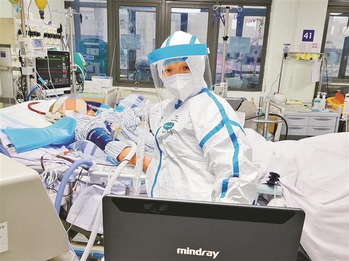 疫情早期,形勢(shì)嚴(yán)峻,隨著確診病人一批批收治,重癥病房很快進(jìn)入超負(fù)荷狀態(tài)?!白罡叻宓臅r(shí)候,我們接診了40多名患者,整個(gè)ICU病房都住滿了。重癥、危重癥患者有個(gè)特點(diǎn),就是病情變化特別快,一兩個(gè)小時(shí)病患的情況就差很遠(yuǎn),這就要求我們必須時(shí)刻嚴(yán)密監(jiān)測(cè)。因此,每次在班上,我都處于高度緊張的狀態(tài),不停地要去觀察分析各種數(shù)據(jù),要及時(shí)對(duì)患者治療進(jìn)行調(diào)整,加上穿著厚厚的防護(hù)服,處于缺氧狀態(tài),有時(shí)候確實(shí)感覺(jué)到蠻累的。”而這樣超速運(yùn)轉(zhuǎn)的值班,一直持續(xù)了一個(gè)多月。