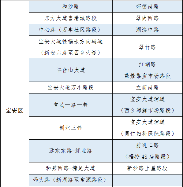 具體設(shè)置路段請(qǐng)看表格▼