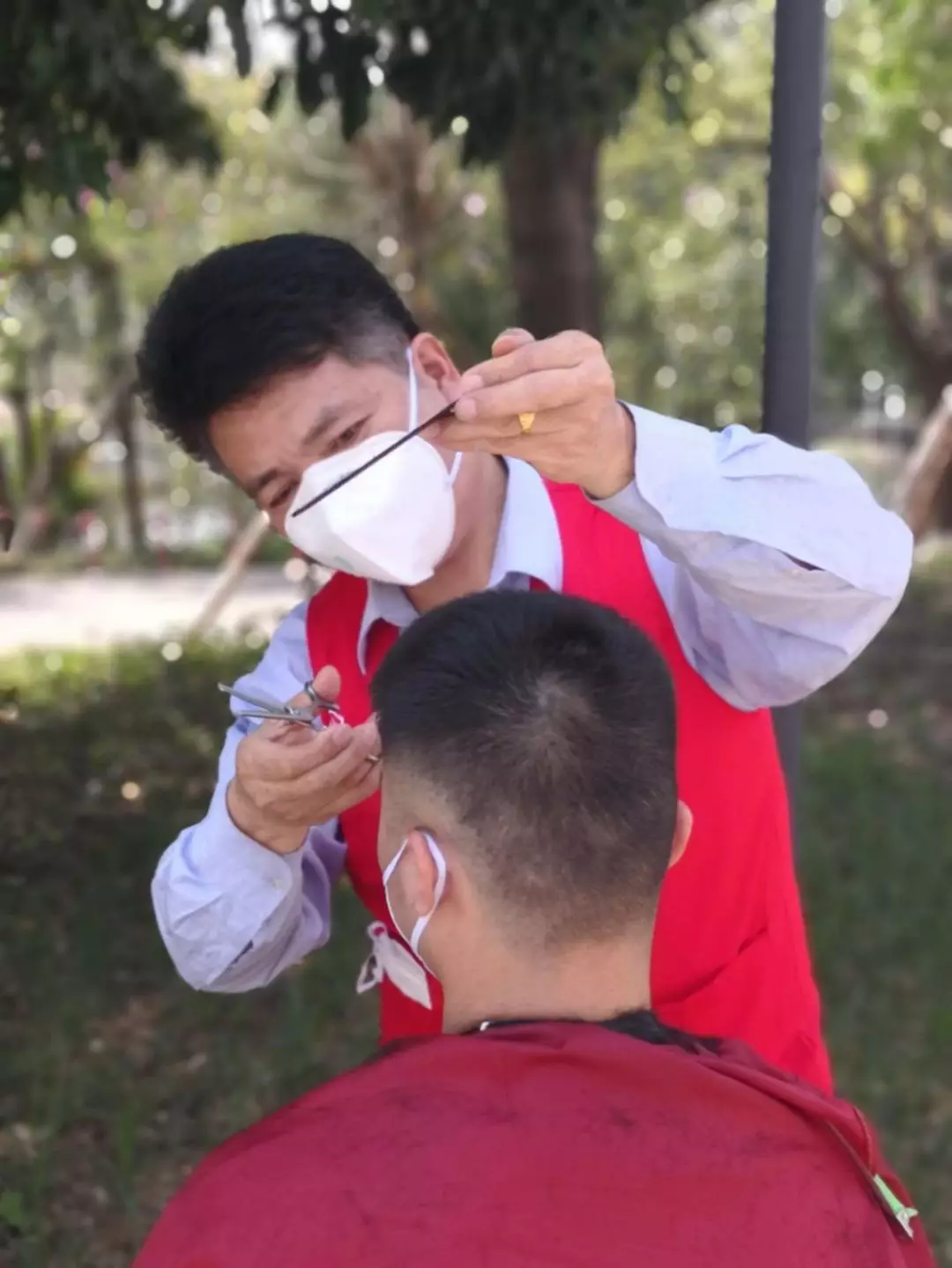 這天,垃圾吊師傅石明山急匆匆找到寶安能源生態(tài)園團(tuán)總支志愿者服務(wù)隊,“我以前開過理發(fā)店,工具就在宿舍,我可以義務(wù)給大家理發(fā)!”大樹下,一套工具,兩把塑料凳,老石的“疫剪理發(fā)站”就齊活了。一個下午,老石一刻不停地為近50人修剪了精干的發(fā)型,并獲得“顧客”的一致好評。老值長陳林生理完發(fā)感慨道:“老石在廠里十幾年了,這么多年都是垃圾吊隊伍的中堅力量,沒想到理發(fā)技術(shù)也這么好!”天黑了,預(yù)約隊伍里還有數(shù)十人在排隊,石明山說,明天我白轉(zhuǎn)夜,等我后天下夜班,“疫剪理發(fā)站”咱們繼續(xù)!