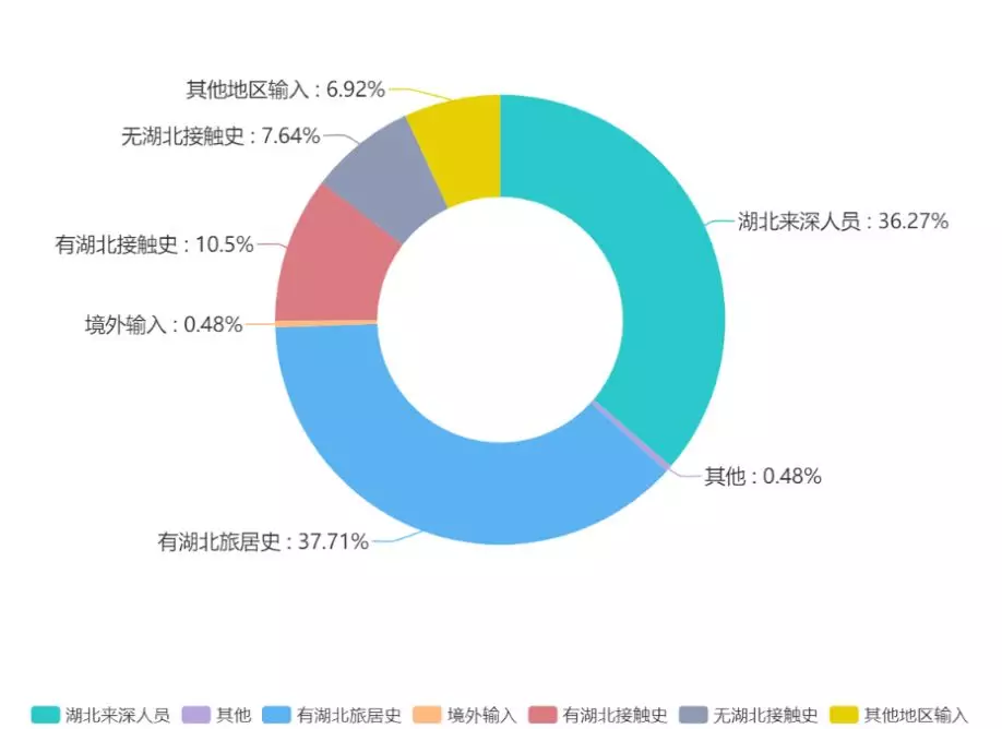 ▲所有輸入型病例中,近六成與湖北武漢有關(guān)聯(lián),湖北省其他城市也為重點(diǎn)來源地區(qū)??梢?,對湖北來深人員、有湖北旅居史人員的管控工作是防疫工作的重要一環(huán)。