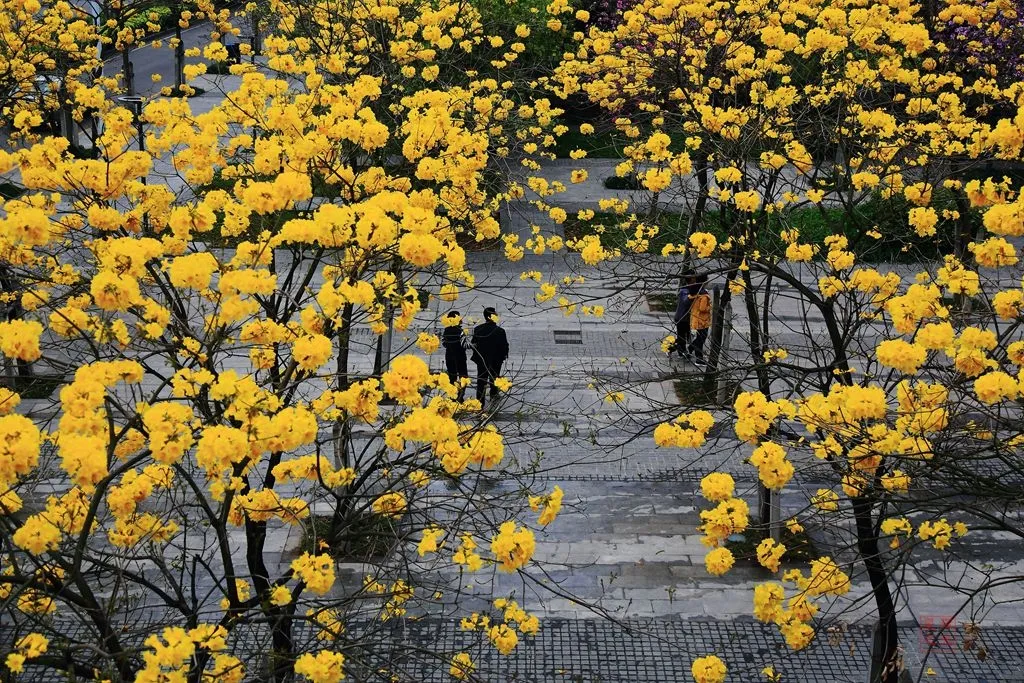 黃花風(fēng)鈴木迎著和煦的春風(fēng)驚艷綻放,