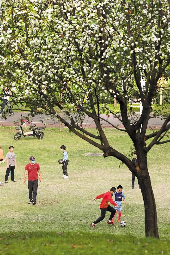 市民們紛紛拿起手上的長槍短炮,以深圳藍(lán)為背景,記錄下春日美景。