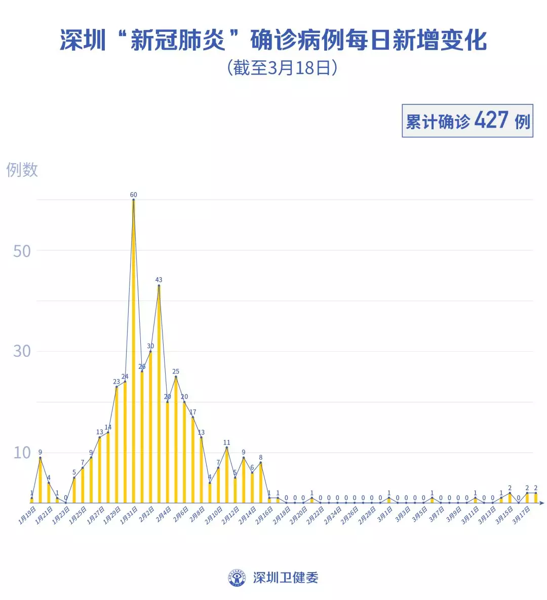 截至3月18日24時(shí),深圳累計(jì)報(bào)告“新冠肺炎”病例427例。3月18日當(dāng)天新增2例,出院4例。