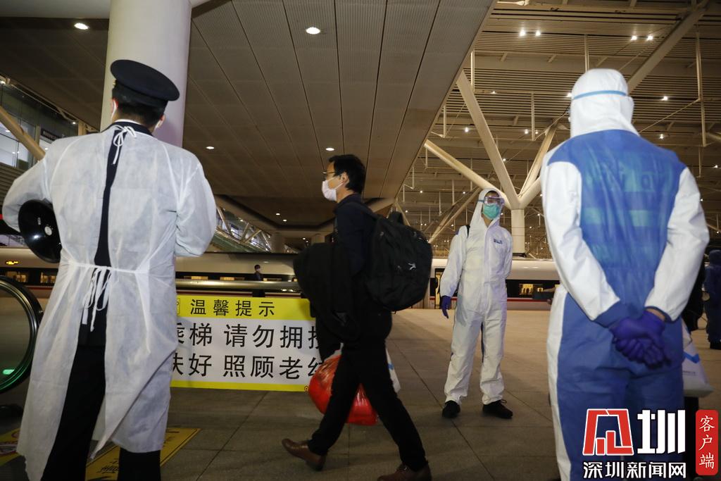 深圳北站客運(yùn)車間黨總支書記龔建力告訴記者,為了確保湖北返深專列安全停靠站臺,深圳北站提前加強(qiáng)了清潔工作,并增派相關(guān)工作人員,確保返深湖北籍乘客有序安全出站。