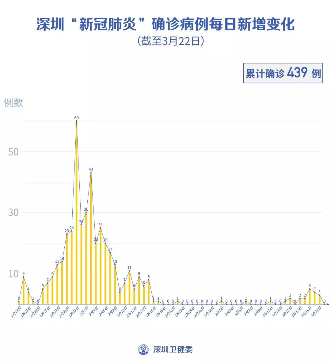 截至3月22日24時(shí),深圳累計(jì)報(bào)告“新冠肺炎”病例439例。3月22日當(dāng)天無新增,出院2例。
