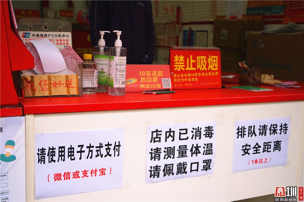 另一家在福田區(qū)華發(fā)北路,店號為83021044的投注站點,門口已經(jīng)被店員用桌子堵上,并貼上了相關防疫告示,“之前深圳福彩中心的工作人員來檢查過,后續(xù)也會給我們配送一些防護物資?!庇浾咴诖擞^察了30分鐘,期間僅有兩位彩民前來,共購買了8元彩票。店主馬先生向記者介紹,“以前大家都會來店里邊坐,主要買的是20分鐘開兩次的‘快樂彩’,現(xiàn)在都不給進來,那個彩票也暫停銷售了?!?nbsp;