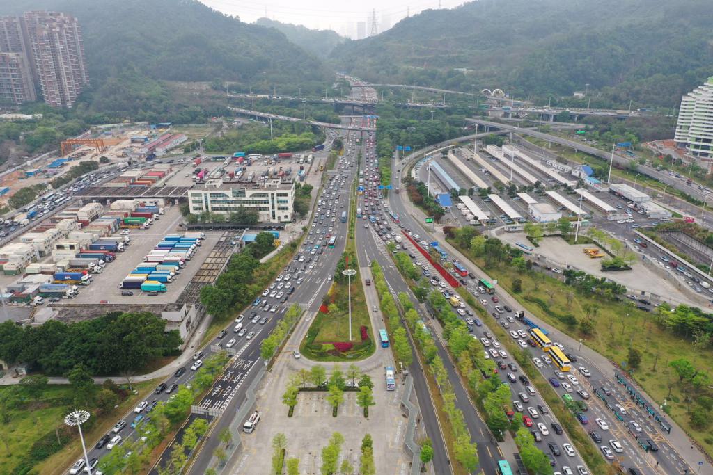 8時(shí)18分,深晚記者在民樂地鐵站附近的人行天橋上看到,此時(shí)梅林關(guān)雙方向車流量非常大,車輛一直處于走走停停的狀態(tài)。