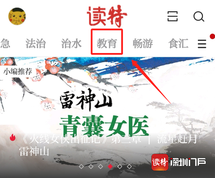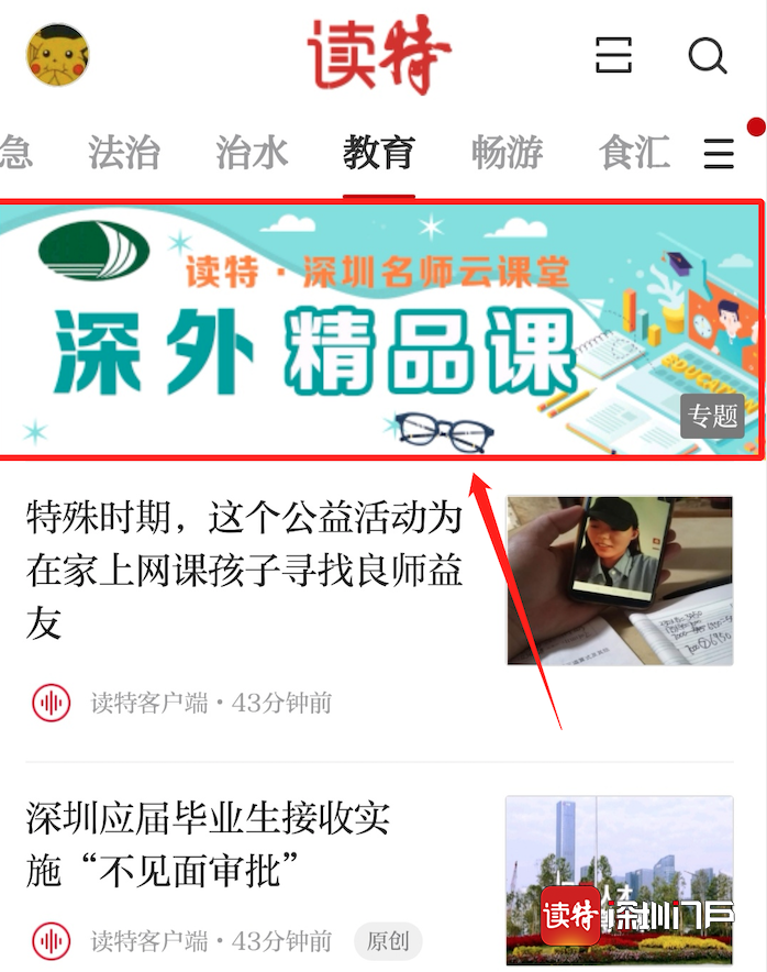 教育頻道置頂位置就可看到“讀特·名師云課堂”