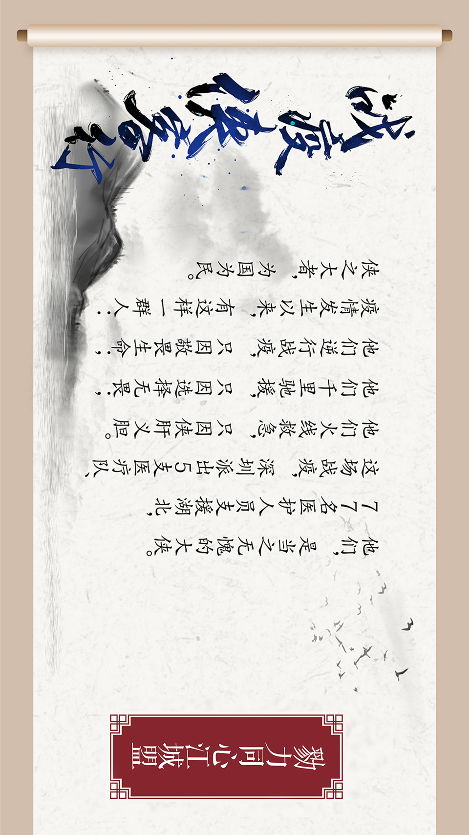 50多天里,他們在武漢東西湖方艙醫(yī)院,在武漢雷神山醫(yī)院,在武漢優(yōu)撫醫(yī)院,在荊州市第一人民醫(yī)院,在荊州監(jiān)利縣人民醫(yī)院和監(jiān)利縣中醫(yī)院同時(shí)間賽跑、與病魔較量,用醫(yī)者仁心,用赤膽無畏,用俠之大義,打贏疫情防控武漢保衛(wèi)戰(zhàn),荊州保衛(wèi)戰(zhàn)。
