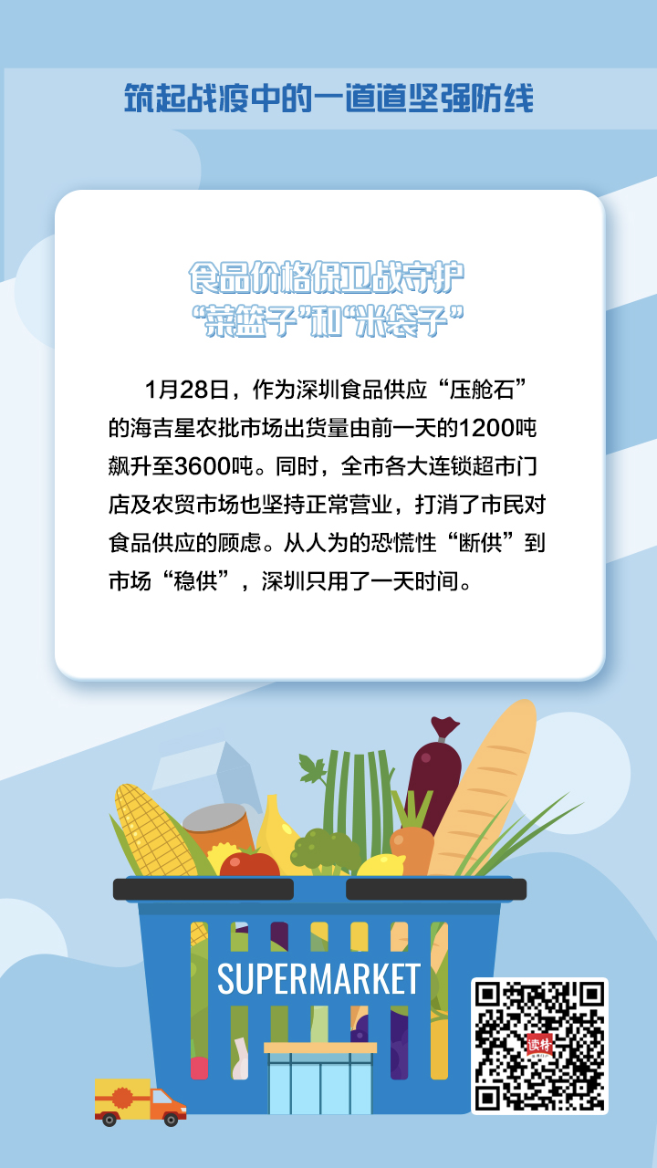 面對抗擊疫情早期出現(xiàn)的市場不穩(wěn)定情況,深圳市場監(jiān)管部門果斷出手,提出保價格、保質量、保供應的“三?!辈呗?,一手筑牢食品農(nóng)產(chǎn)品供應鏈,一手重振防疫物資供給鏈,以充足的物資補給,將食品和防疫物資的價格穩(wěn)定在正常水平上。