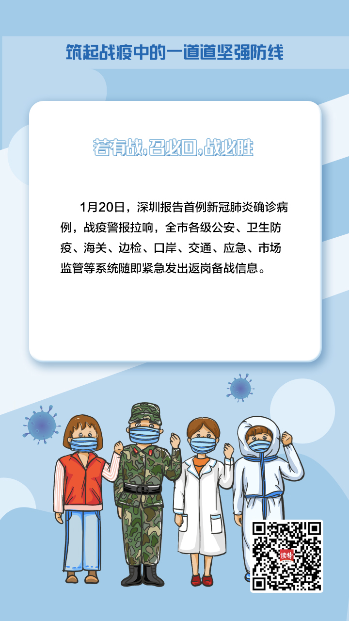 牢記習近平總書記的重要指示,深圳在新冠肺炎疫情防控的人民戰(zhàn)爭、總體戰(zhàn)阻擊戰(zhàn)中,鑄造了一支由不同“兵種”、精銳之師組成的守護者隊伍,堅定地筑起一道堅強屏障,守護好城市“外防輸入、內防擴散”的門戶。