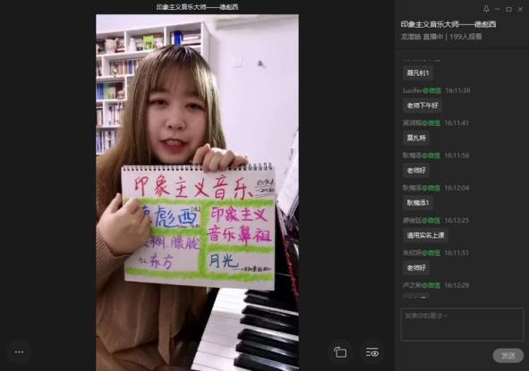 據(jù)了解,龍華區(qū)實驗學校的趙都都老師以及丹堤實驗學校的龍潛皓老師分別帶來的《十個小印第安人》、《印象主義音樂大師—德彪西》兩個趣味與知識完美結合的課例。為了上好一節(jié)音樂課,龍老師與趙老師“各顯神通”,在特殊時期有限的條件下創(chuàng)造出了無數(shù)可能。由于龍老師沒有電腦,就自己動手做實物“ ppt”,并充分利用自己的專業(yè)以及身邊有的物資“鋼琴”。趙老師設計了精美的 ppt,同學們都被深深地吸引,大家都聚精會神的上課并且積極互動。