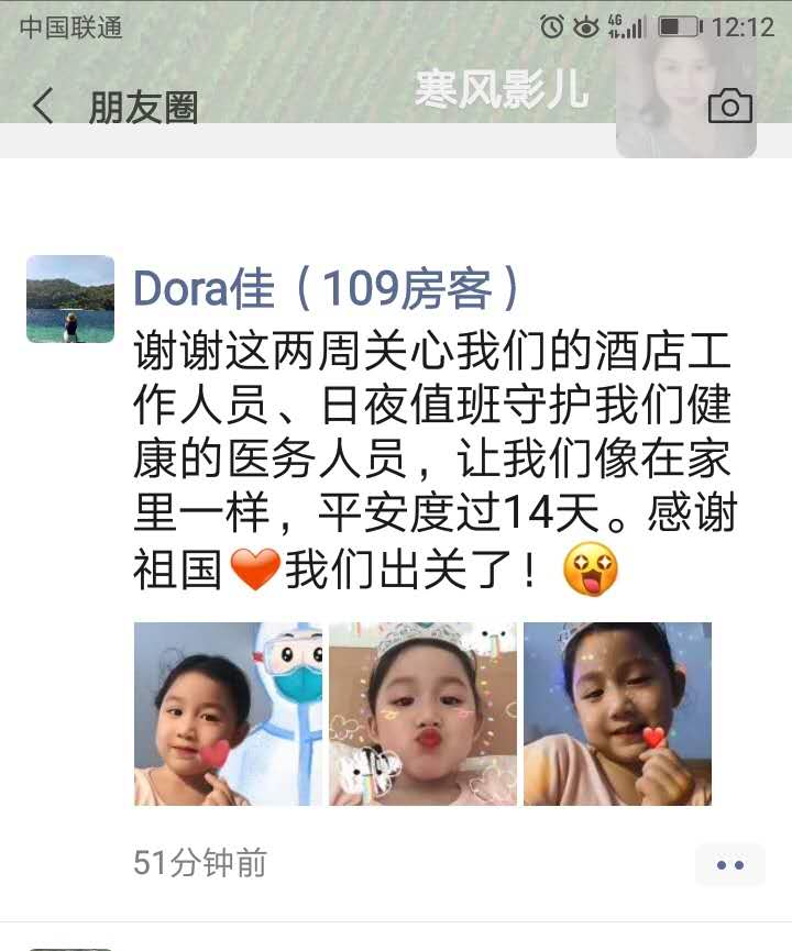 每當(dāng)看到了一批批解除隔離的人開開心心地收拾行李回家,看到客人留下的感謝信、微信留言,尤其是聽到客人們離開時(shí)一句句真摯的話語,同事們都倍感欣慰,更加堅(jiān)信風(fēng)雨過后,終會(huì)見到彩虹。