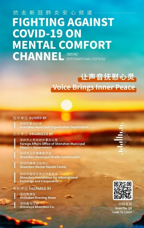 在疫情面前,每一份信念都意義重大,每一個希望都影響深遠。4月11日,抗擊新冠肺炎安心頻道(國際版)在喜馬拉雅 APP正式上線。該欄目在深圳市委組織部的指導下,由深圳市外辦攜手深圳市衛(wèi)健委、深圳市精神衛(wèi)生中心、深圳市國際交流合作基金會聯(lián)合出品,由深圳晚報和深圳喜馬拉雅共同承制。據(jù)悉,抗擊新冠肺炎安心頻道(國際版)是深圳市外辦首次聯(lián)合多部門協(xié)作,共同出品的全英文音頻欄目,也是繼"抗擊新型肺炎安心手冊音頻版"推出以來的又一大創(chuàng)新。該欄目的推出體現(xiàn)了深圳對中外居民的人文關懷,也展現(xiàn)了深圳作為國際化城市的溫暖大愛。