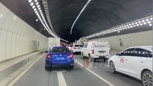 今天上午11點(diǎn)左右,記者來(lái)到丹平快速了解情況,看到往市區(qū)方向出現(xiàn)多車(chē)緩行的情況,而在九尾嶺隧道前一百米左右的位置發(fā)生了一起交通事故,造成四車(chē)追尾。