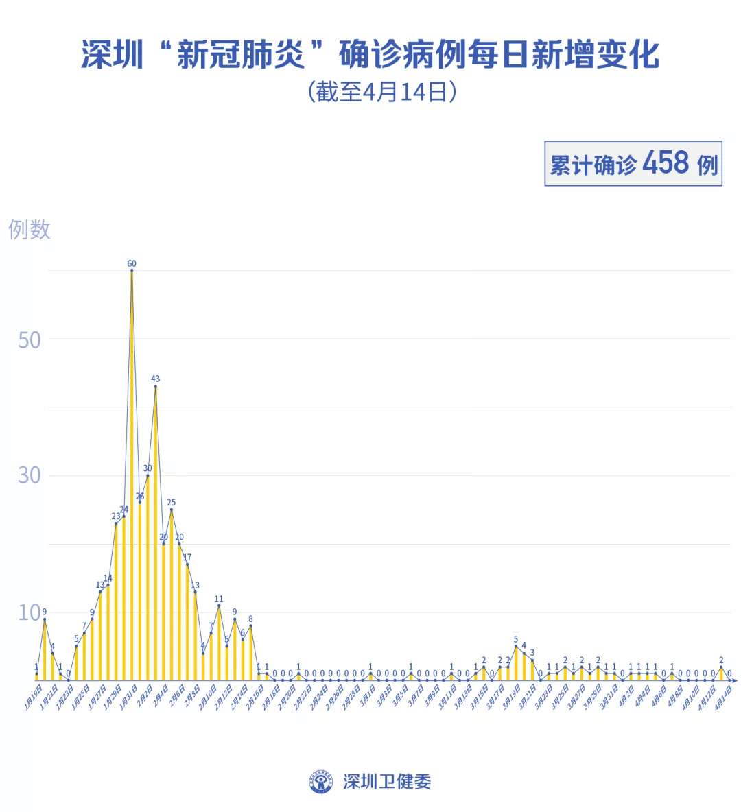 截至4月14日24時(shí),深圳累計(jì)報(bào)告新冠肺炎病例458例。4月14日當(dāng)天新增出院3例。