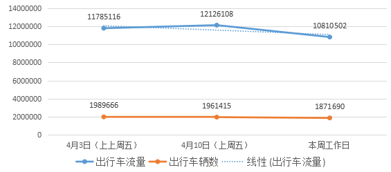 交警部門預(yù)計(jì),今天周五晚高峰,出行車輛的次數(shù)會(huì)依然處于高位。經(jīng)對15時(shí)至21時(shí)全市出行車輛情況統(tǒng)計(jì),4月3日(上上周五)全市出行車流量1178.51萬輛次,出行車輛198.97萬輛;4月10日(上周五)全市出行車流量1212.61萬輛次,出行車輛196.15萬輛。結(jié)合本周工作日全市出行車輛情況,深圳交警預(yù)計(jì)4月17日(本周五)全市出行車流量較工作日稍有增加,增加約9.34%,達(dá)1182.97萬輛次。