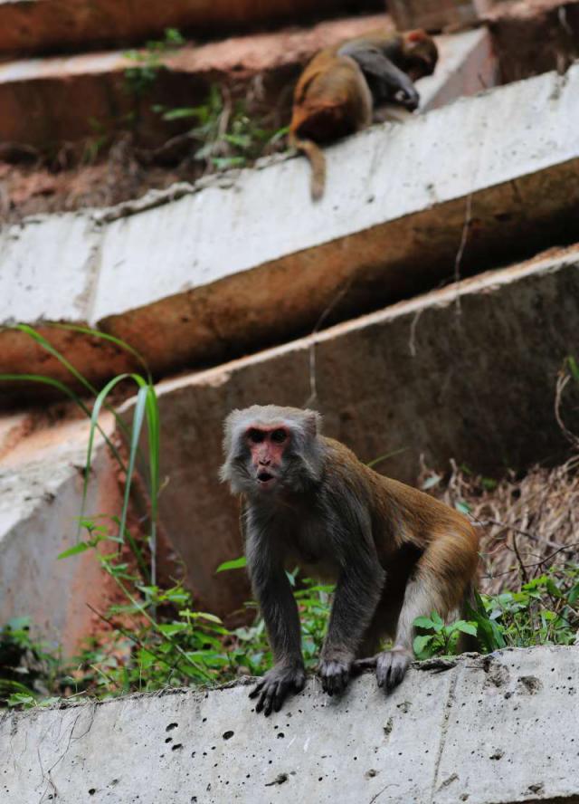 ▲猴子見(jiàn)到有游客,正準(zhǔn)備從山上下來(lái)。