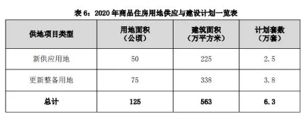 從商品住房用地安排來看,2020年度計劃安排商品住房用地供應(yīng)125公頃,包括新供應(yīng)用地50公頃,更新整備用地75公頃。同時,計劃共計擬建設(shè)擬建設(shè)商品住房6.3萬套、建筑面積563萬平方米。其中新供應(yīng)用地擬建設(shè)2.5萬套、建筑面積約225萬平方米;更新整備用地擬建設(shè)3.8萬套、建筑面積約338萬平方米。
