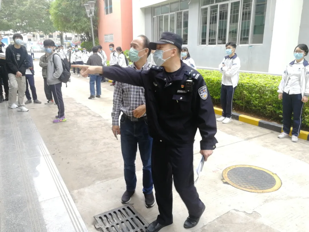 “學(xué)校大門是校園疫情防控的第一道防線,把好校園第一道關(guān)卡至關(guān)重要,采取全封閉管理,對(duì)外來(lái)人員嚴(yán)格詢問(wèn)登記,逢車必檢、逢人必查,在上學(xué)放學(xué)高峰時(shí)段確保校門口安保力量,將風(fēng)險(xiǎn)隱患攔截在校門外?!?月21日,在福田區(qū)云頂學(xué)校排查安全隱患時(shí),福強(qiáng)派出所社區(qū)民警程印對(duì)該校安全負(fù)責(zé)人特別強(qiáng)調(diào)。據(jù)了解,截至4月25日,福田公安分局對(duì)轄區(qū)44所中學(xué)開(kāi)展了檢查,發(fā)現(xiàn)并整改問(wèn)題隱患17處。