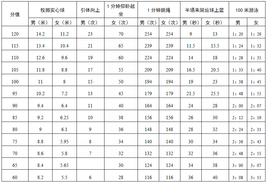 深圳市2020年初中畢業(yè)生升學體育考試項目規(guī)則及評分標準