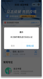 ①在首頁(yè)開學(xué)專區(qū)點(diǎn)擊“學(xué)生登記”,若家長(zhǎng)之前未進(jìn)行自主申報(bào)和實(shí)名認(rèn)證,系統(tǒng)將彈出提示,請(qǐng)家長(zhǎng)本人先完成自主申報(bào)和實(shí)名認(rèn)證。