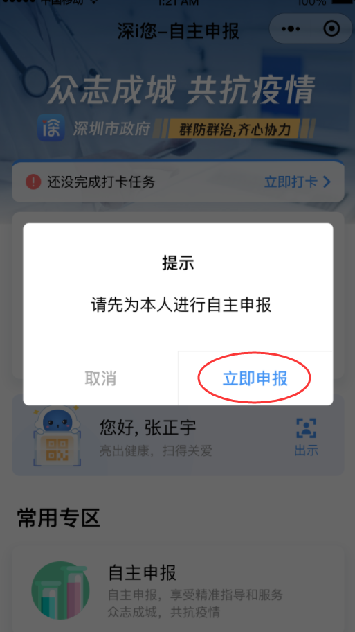 第二步:點(diǎn)擊底部菜單欄“健康申報(bào)”-“深i您”進(jìn)入申報(bào)系統(tǒng)。