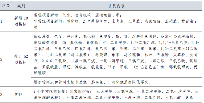 深圳市《生活飲用水水質(zhì)標(biāo)準(zhǔn)》與國家現(xiàn)行標(biāo)準(zhǔn)相比,增加了10項(xiàng)指標(biāo),提升了52項(xiàng)指標(biāo)(含消毒劑);附錄由原來的28項(xiàng)增加到45項(xiàng);考核方法上提升了出廠水和管網(wǎng)水合格率要求,增加了嗅味物質(zhì)和消毒副產(chǎn)物的檢測,重點(diǎn)關(guān)注龍頭水水質(zhì)。