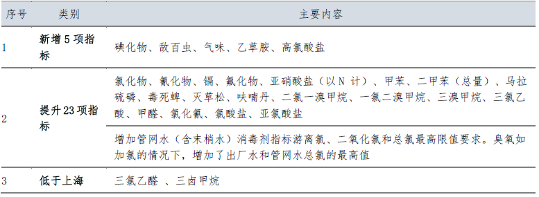 深圳市《生活飲用水水質(zhì)標(biāo)準(zhǔn)》與上海標(biāo)準(zhǔn)相比,增加了5項(xiàng)指標(biāo),提升了23項(xiàng)指標(biāo)(含消毒劑);附錄增加了18項(xiàng)指標(biāo),考核方法上提升了出廠水和管網(wǎng)水合格率要求,增加了嗅味物質(zhì)檢測,重點(diǎn)關(guān)注龍頭水水質(zhì)。