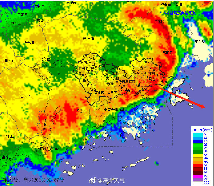 21時(shí)49分:目前強(qiáng)雷雨云團(tuán)已給寶安、光明、龍華、南山、福田等區(qū)域帶來強(qiáng)雷雨和大風(fēng),預(yù)計(jì)即將影響羅湖、鹽田、龍崗、坪山和大鵬,將帶來小時(shí)雨量30毫米左右的降雨以及8-9級(jí)的短時(shí)大風(fēng),請(qǐng)注意防御。