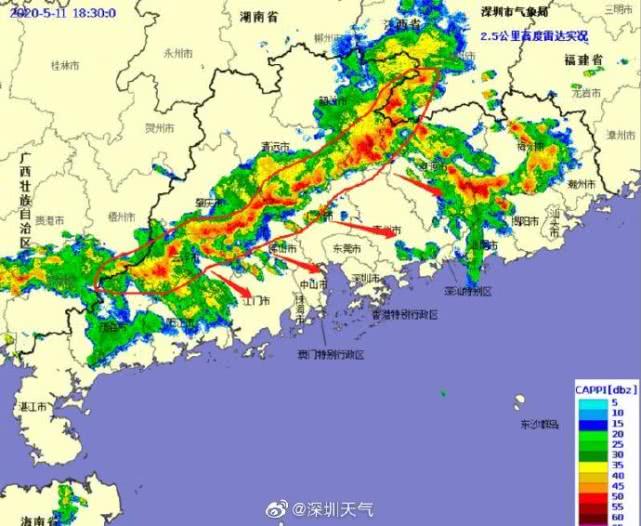 23時(shí)32分:【深圳市取消暴雨黃色和大風(fēng)黃色預(yù)警,雷電預(yù)警繼續(xù)生效】強(qiáng)降雨帶已經(jīng)移出我市,市氣象臺(tái)于2020年05月11日23時(shí)30分在全市取消暴雨黃色、大風(fēng)黃色預(yù)警。全市雷電預(yù)警仍在生效中,未來1-2小時(shí)仍有陣雨和零散雷暴,市民仍需注意遠(yuǎn)離河道和危險(xiǎn)邊坡等。