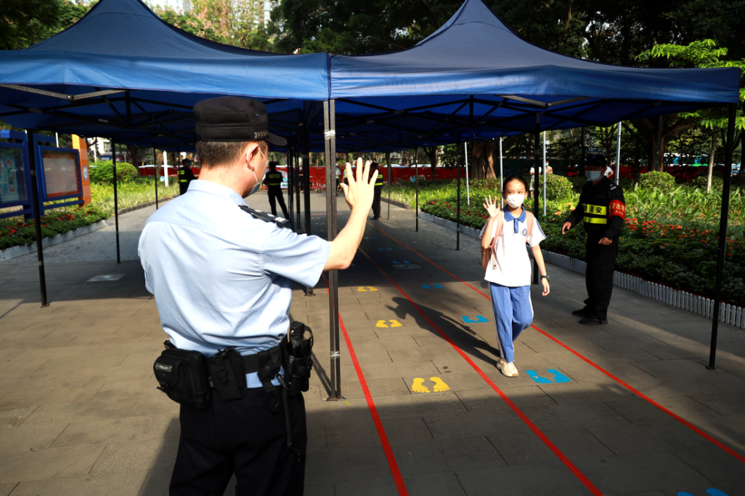 綠樹陰濃夏日長,恰是讀書好時節(jié)。5月11日,深圳市第二批學生返校復課。按照深圳市公安局和福田區(qū)委區(qū)政府關于復學復課的部署要求,深圳市公安局福田分局全面開啟“護學模式”,做實做細各項防控舉措,為福田學子們營造安全有序的開學環(huán)境,全力護航校園安全。據(jù)統(tǒng)計,5月11日,福田公安分局共出動警力870人次,發(fā)動保安員1105人次、護學崗力量953人次,保障全區(qū)105所學校,10.6萬名學生安全返校復課。