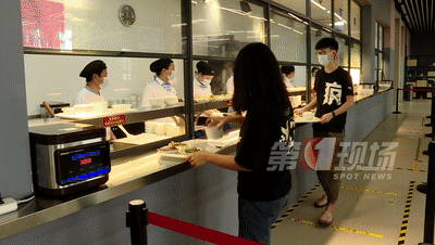 目前,學校的單體建筑均實行封閉式管理,食堂座位也錯開擺放并設(shè)置了隔板,讓同學們分散就餐。