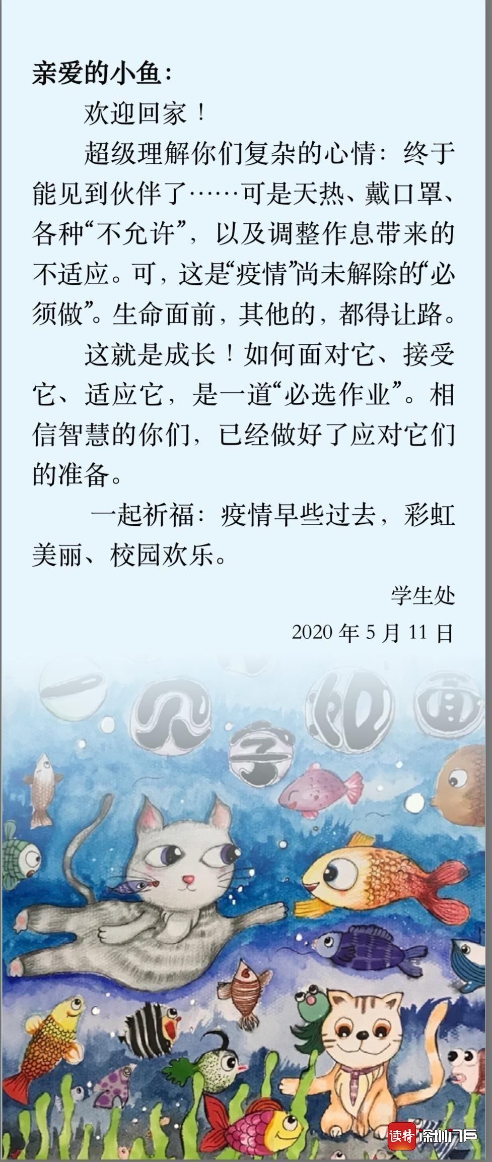 深圳小學專門為返校學生提供了“暖心包”,將口罩、疫情防控工作指引、健康信息申報卡等裝進來。班主任在心理教師的指導下,根據(jù)學生的年齡特點和心理特點進行課程設計,引導學生分享疫情期間的“正能量”,增強學生對學校、班級的歸屬感,幫助學生盡快恢復正常的學習和生活節(jié)奏。(讀特記者姚卓文)