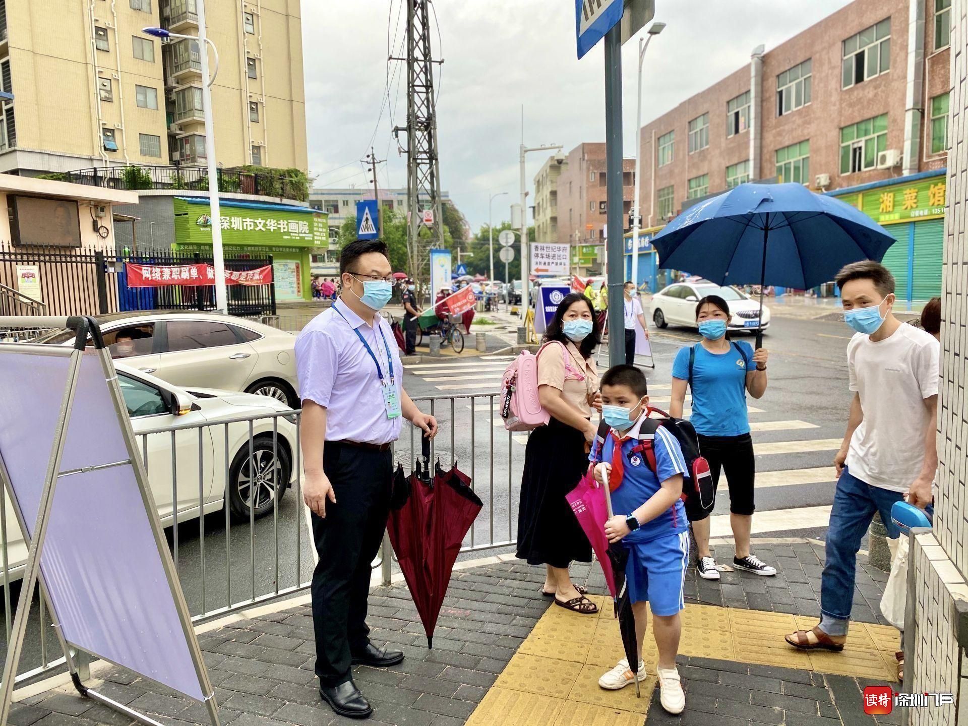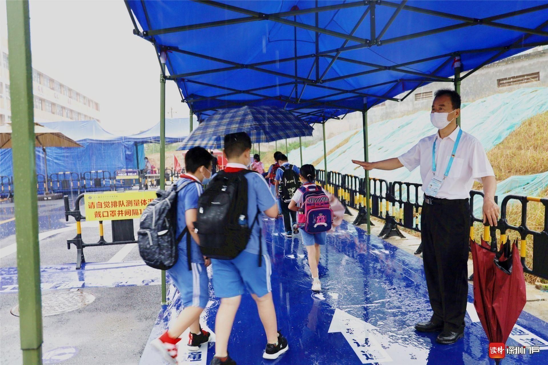 今天,龍城小學一至三年級的龍小豆們返校啦!盡管龍舟水傾盆而至,但龍小巴學園為孩子們遮風擋雨!為了解決龍小豆們返?!白詈?.1公里”,龍城小學在學校門外設立風雨連廊,并在東西門內(nèi)搭建藍色頂棚,方便風雨天里龍小豆們?nèi)胄#★L里雨里,孩子們,校園都在等你?。ㄗx特記者李麗)
