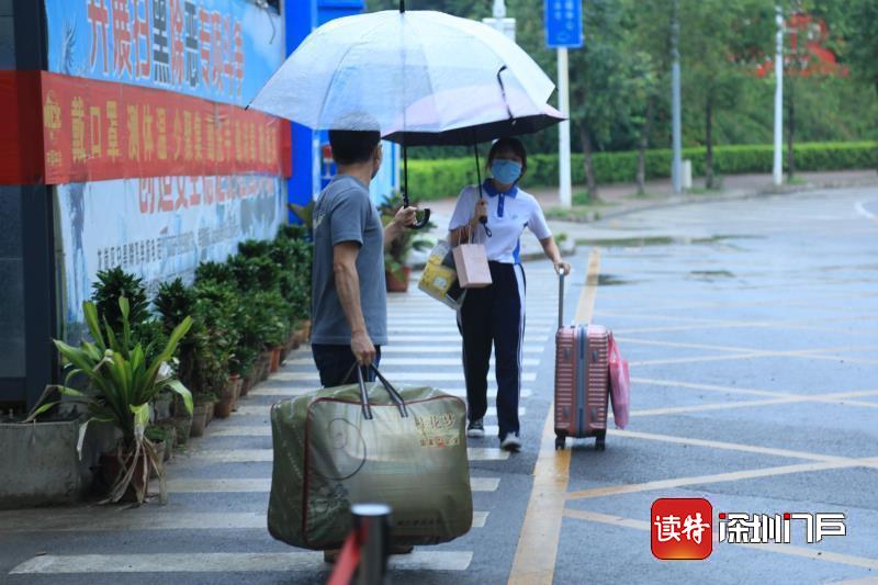 龍崗二職開學第一天,傾盆暴雨阻擋不住同學們開學的笑臉。校長、轄區(qū)民警、教師黨員志愿者早早在校門口迎接同學們回“家”。這是闊別三月的重逢,少年歸來依舊春風滿面。