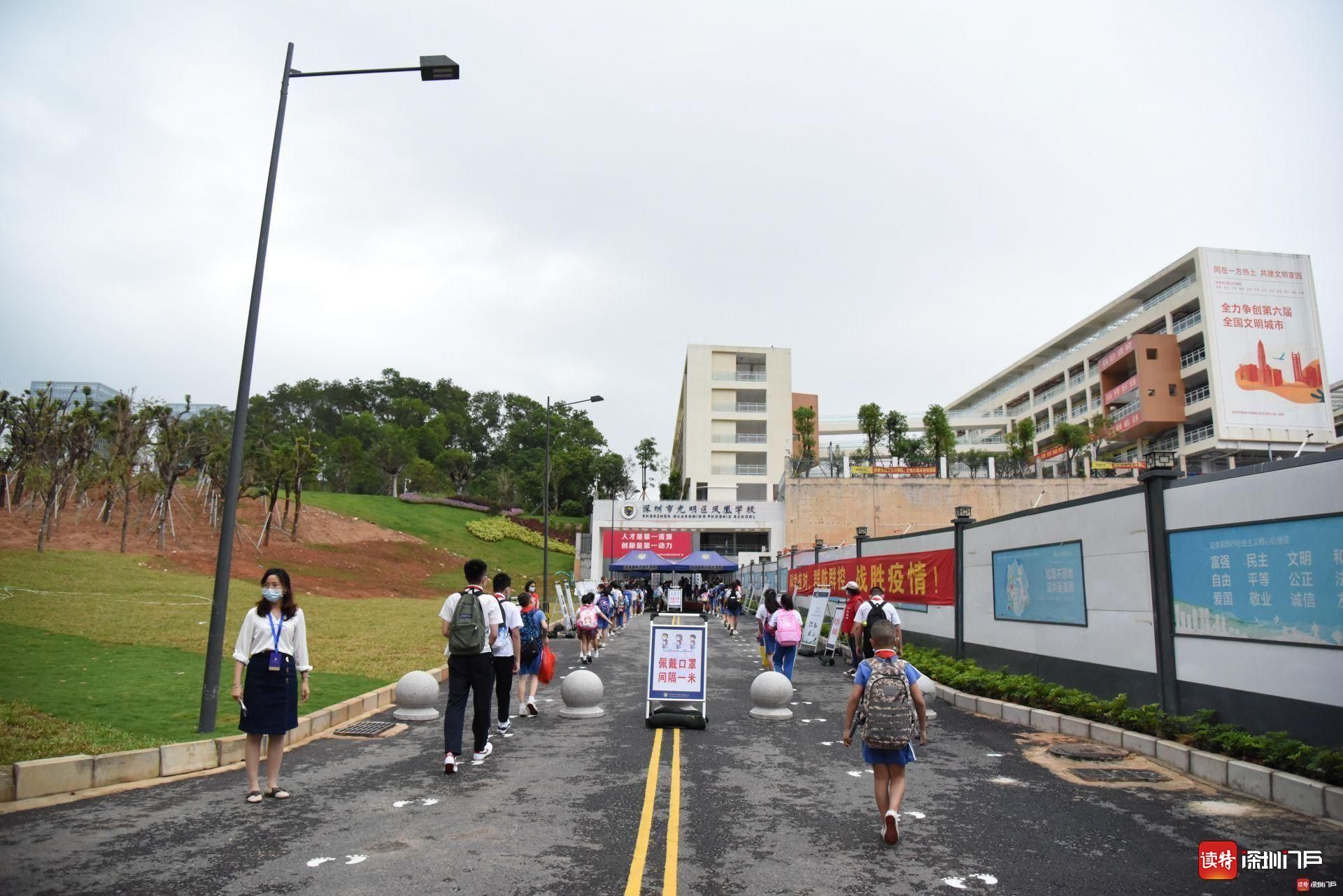 今天,光明區(qū)鳳凰學校一至三年級662名學生返校。低年段學生返校第一天,記者在校門看到,孩子們均按照學校的規(guī)定,分兩隊一字排開有序進校。
