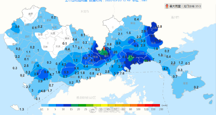 12時(shí)55分:目前全市大部分地區(qū)都在降雨,短時(shí)強(qiáng)降水主要出現(xiàn)在龍崗和坪山等地,大家暫時(shí)不要外出。