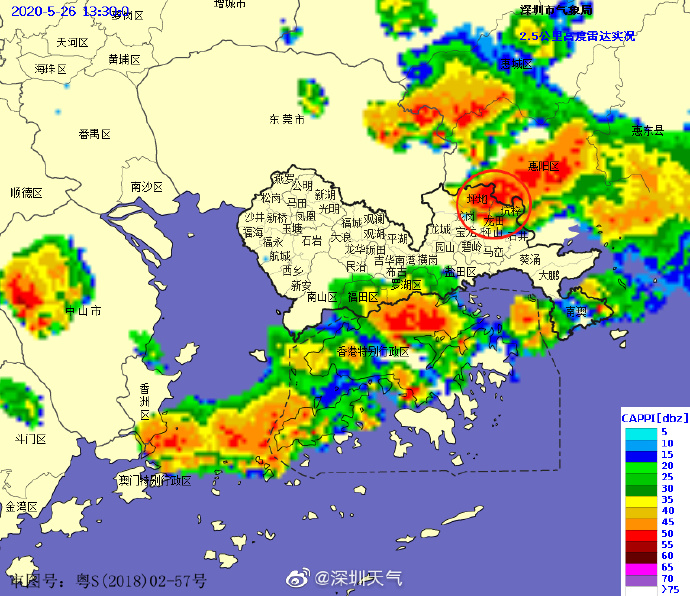 13時(shí)00分:【深圳市暴雨黃色預(yù)警】預(yù)計(jì)全市1-2小時(shí)內(nèi)降雨加強(qiáng),將出現(xiàn)20-30毫米降水,深圳市氣象臺(tái)于2020年05月26日13時(shí)00分在全市發(fā)布暴雨黃色預(yù)警,全市進(jìn)入暴雨戒備狀態(tài),請(qǐng)注意防范。