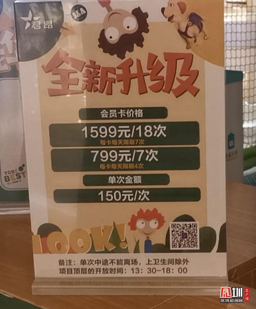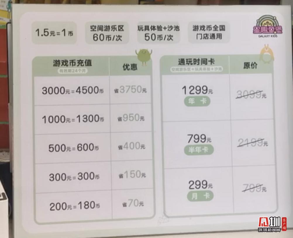 星際傳奇采用多場所差異化的收費制度,每個項目價格均有不同,深圳新聞網(wǎng)記者從工作人員處了解到每位兒童的單次消費均價在150元左右,陪同的大人免費。有需要的市民也可以選擇辦理月卡或者是年卡,享受更大力度的折扣。游樂場內(nèi)部地面干凈整潔,有家長休息區(qū),在前臺有充電寶租借。
