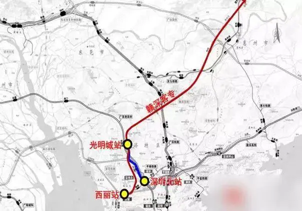 西麗綜合交通樞紐將引入贛深客專、深茂鐵路、深汕鐵路、深珠城際4條高鐵,深惠城際、深莞增城際2條珠三角城際鐵路和軌道13、15、27、29號(hào)線4條城市軌道。
